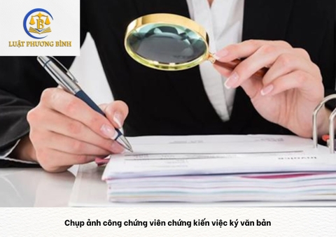 Việc ký văn bản công chứng trước sự chứng kiến của công chứng viên phải được chụp ảnh và lưu trữ trong hồ sơ công chứng."
