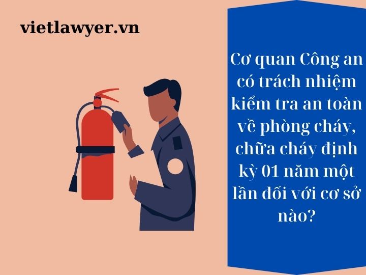 0927625666Chị Mai - Lào Cai có câu hỏi gửi về VietLawyer như sau: "Cơ quan Công an có trách nhiệm kiểm tra an toàn về phòng cháy, chữa cháy định kỳ 01 năm một lần đối với cơ sở nào?"