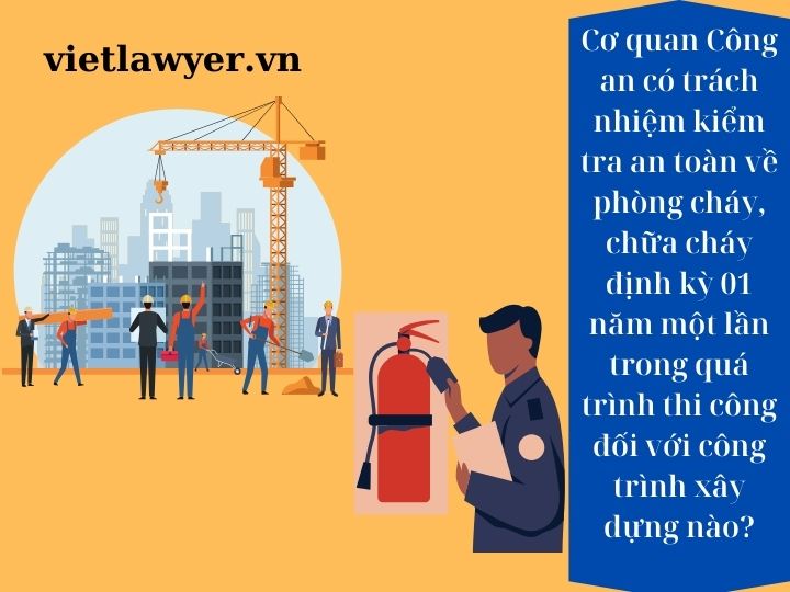 0927625666Anh Tú - Yên Hòa có câu hỏi gửi VietLawyer như sau: "Cơ quan Công an có trách nhiệm kiểm tra an toàn về phòng cháy, chữa cháy định kỳ 01 năm một lần trong quá trình thi công đối với công trình xây dựng nào?"