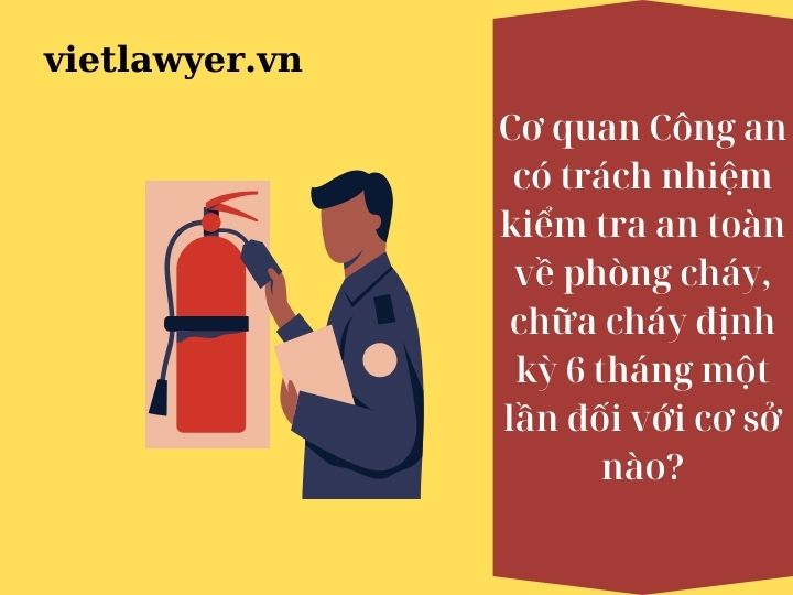 0927625666Anh Hòa - Cao Bằng có câu hỏi gửi về VietLawyer như sau: "Cơ quan Công an có trách nhiệm kiểm tra an toàn về phòng cháy, chữa cháy định kỳ 6 tháng một lần đối với cơ sở nào?"