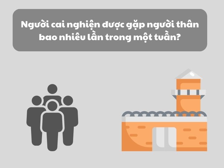 "1. Người cai nghiện được thăm gặp người thân tại phòng thăm gặp của cơ sở cai nghiện bắt buộc, một tuần một lần, mỗi lần không quá 02 giờ và tối đa không quá 03 thân nhân. Trường hợp gặp lâu hơn phải được Giám đốc cơ sở cai nghiện bắt buộc đồng ý và tối đa không quá 04 giờ.