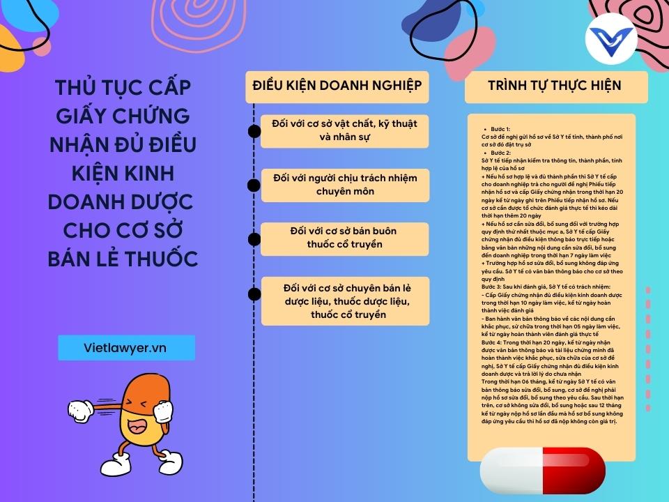 0927625666Thủ tục cấp Giấy chứng nhận đủ điều kiện kinh doanh dược cho cơ sở bán lẻ thuốc | Giấy phép con - Kinh doanh dược là ngành, nghề đầu tư kinh doanh có điều kiện. Các cơ sở sau được nêu sau đây cần đề nghị Cấp Giấy chứng nhận tại cơ quan có thẩm quyền. Công ty Luật VietLawyer sẽ cung cấp cho khách hàng về thủ tục Cấp chứng nhận đủ điều kiện kinh doanh dược cho cơ sở bán lẻ thuốc.