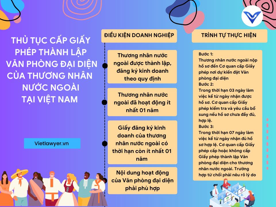 0927625666Thủ tục cấp Giấy phép thành lập văn phòng đại diện của thương nhân nước ngoài tại Việt Nam | Giấy phép con - Thành lập văn phòng đại diện của thương nhân nước ngoài tại Việt Nam là hoạt động kinh doanh có điều kiện. Các thương nhân nước ngoài lập văn phòng đại diện tại Việt Nam cần đề nghị cấp Giấy phép tại cơ quan có thẩm quyền. Công ty Luật VietLawyer sẽ cung cấp cho khách hàng về thủ tục cấp Giấy phép thành lập văn phòng đại diện của thương nhân nước ngoài tại Việt Nam.