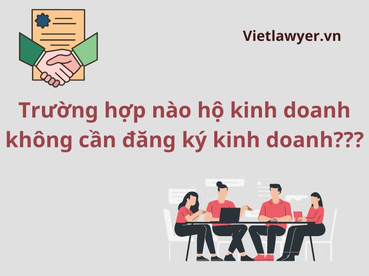 0927625666Trường hợp nào hộ kinh doanh không cần đăng ký kinh doanh??? Cá nhân, tổ chức khi muốn thành lập hộ kinh doanh phải thực hiện đăng ký kinh doanh theo quy định của pháp luật. Tuy nhiên, trong một số trường hợp, hộ kinh doanh không cần phải đăng ký kinh doanh. Trên cơ sở quy định pháp luật hiện hành, Công ty Luật VietLawyer xin chia sẻ như sau: