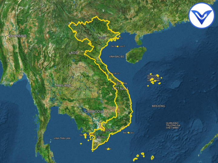 - Vị trí địa lí: nằm ở phía đông nam châu Á, trên bán đảo Đông Dương, tiếp giáp 3 nước, chung Biển Đông với nhiều quốc gia trong khu vực, nằm trong múi giờ số 7.