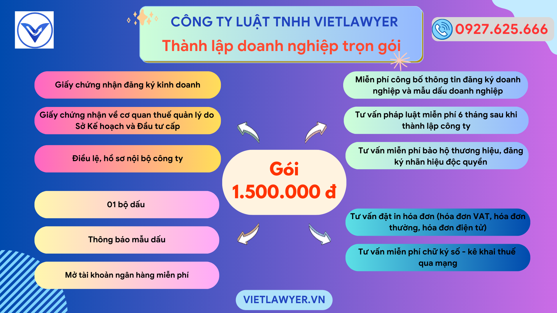 0927625666Đăng Ký Kinh Doanh Trọn Gói | Giá Chỉ 999 K | Sốc Giá Khởi Nghiệp - Thành lập công ty là khâu đầu tiên để bạn bước chân vào chặng đường khởi nghiệp thành công. Tuy nhiên, bạn đang lúng túng và đau đầu với các thủ tục hành chính để đăng ký thành lập doanh nghiệp trong khi khối lượng công việc cần chuẩn bị quá nhiều? Đừng lo lắng, hãy để Công ty Luật VietLawyer giúp đỡ bạn!