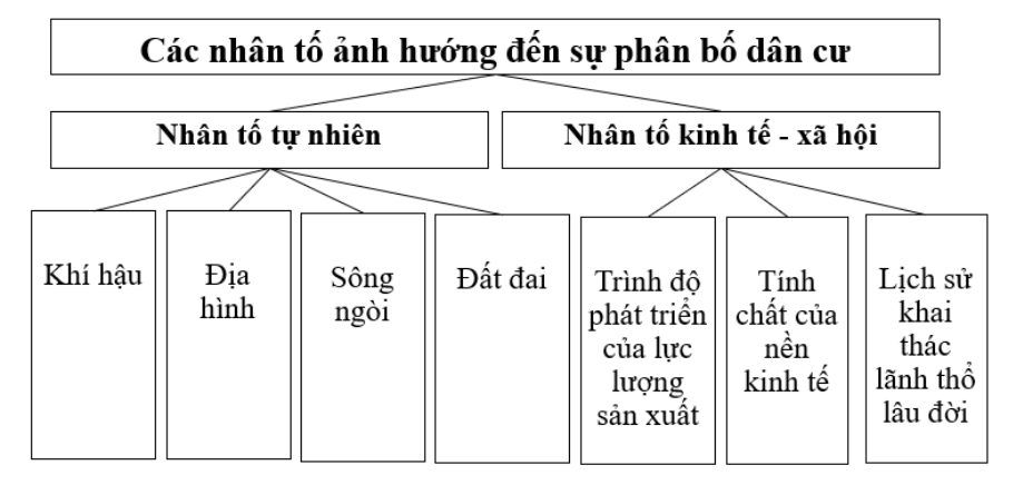 * Hãy vẽ sơ đồ thể hiện các nhân tố tác động đến phân bố dân cư?
