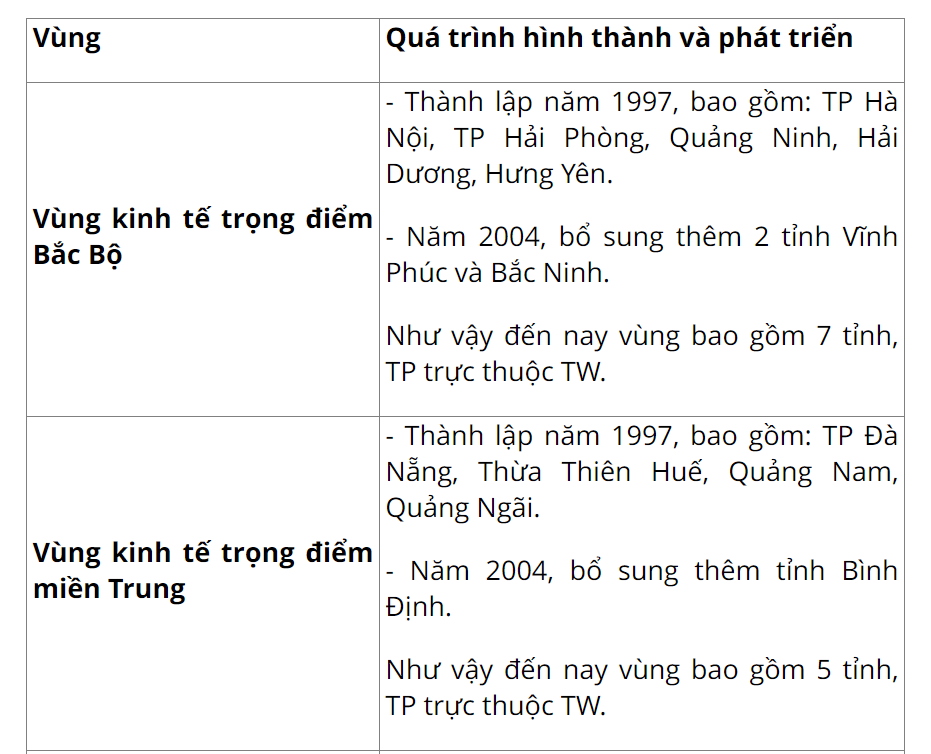 * Dựa vào thông tin bài học, hãy trình bày quá trình hình thành và phát triển các vùng kinh tế trọng điểm ở nước ta?