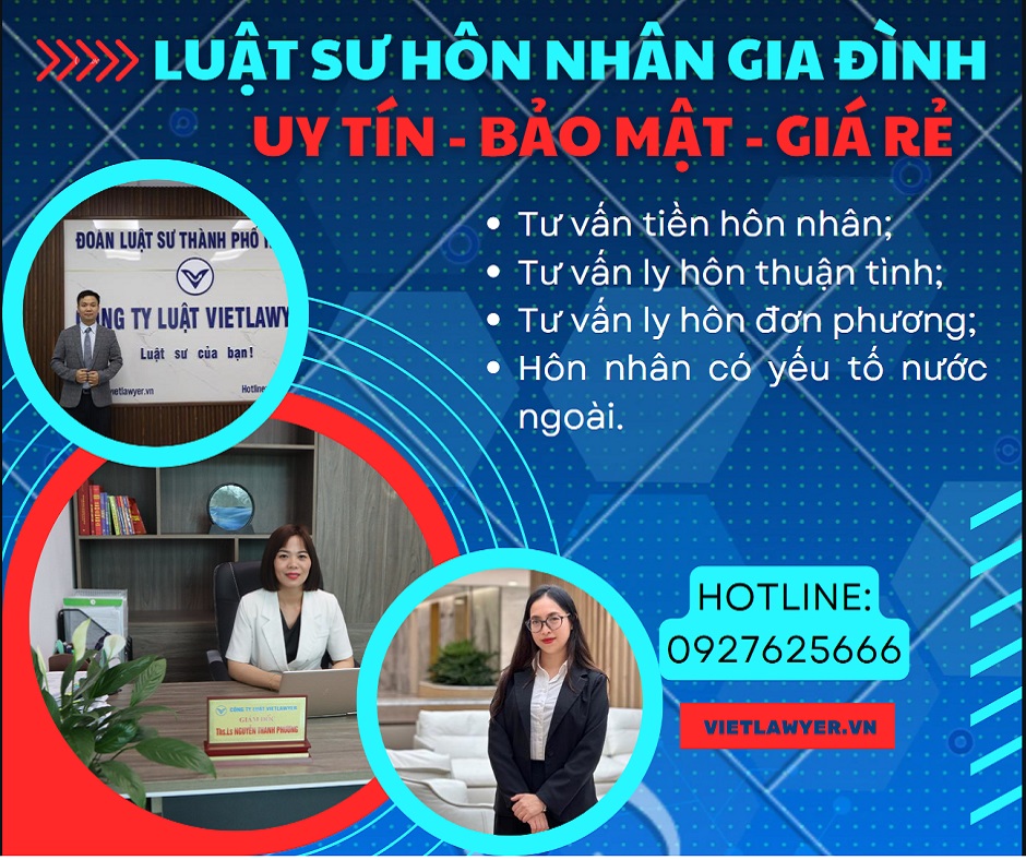 Khi bạn, người thân của bạn có nhu cầu về những vấn đề liên quan đến luật hôn nhân và gia đình, hay liên hệ với Công ty Luật Vietlawyer để được tư vấn hoặc đại diện để thực hiện biện pháp, thủ tục để bảo vệ quyền và lợi ích hợp pháp của bạn.