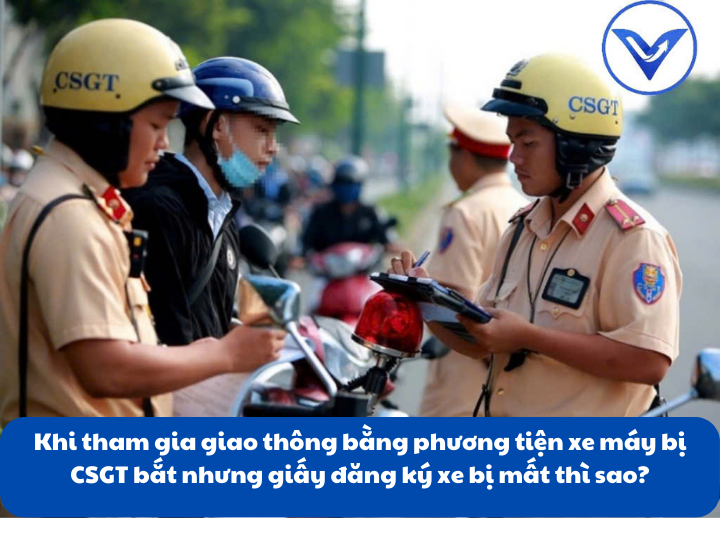 Trong trường hợp khi tham gia giao thông bằng phương tiện xe máy bị CSGT bắt nhưng giấy đăng ký xe bị mất, thì người điều khiển phương tiện giao thông phải xuất trình các giấy tờ báo mất và giấy xác nhận về việc cấp lại các giấy tờ bị mất đó. Trong trường hợp không mang theo các giấy tờ báo mất, giấy xác nhận về việc cấp lại thì có thể bị xử phạt hành chính và có khả năng bị giữ xe.
