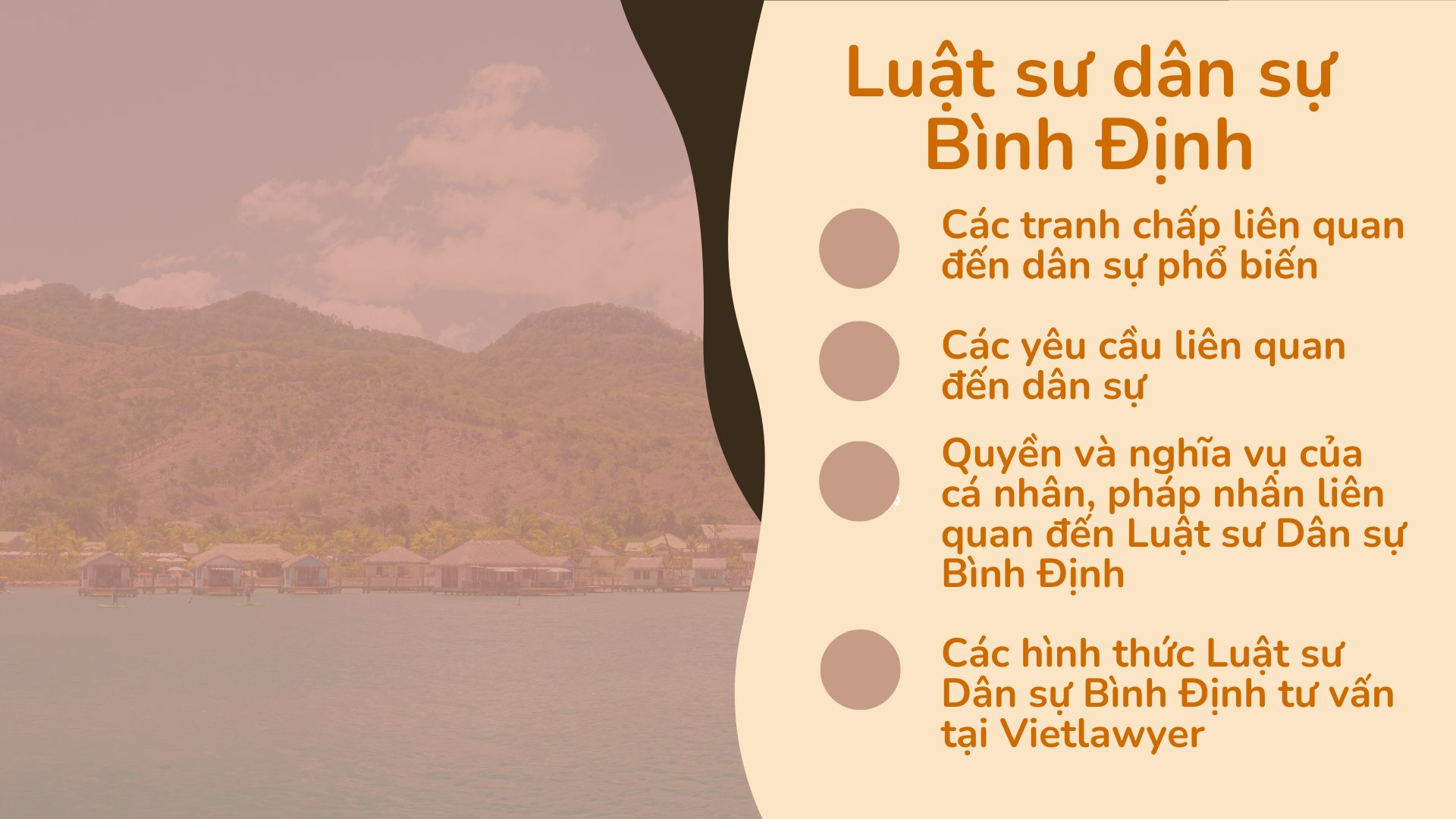 Tại đây, Luật sư dân sự Bình Định là những luật sư tại Công ty luật Vietlawyer có chuyên môn trong lĩnh vực dân sự, với nhiều năm kinh nghiệm và thực hiện các vụ việc lớn tại nhiều tỉnh thành. trong đó có tỉnh Bình Định. Các luật sư dân sự Bình Định có thể tư vấn và đại diện cho khách hàng trong các vụ việc pháp lý liên quan đến vụ việc dân sự, bao gồm: các vấn đề liên quan đến quyền sở hữu/sử dụng tài sản, giao dịch dân sự, hôn nhân gia đình, kinh doanh thương mại, lao động, quyết định hành chính và các vấn đề dân sự khác, giúp khách hàng giải quyết các vấn đề pháp lý một cách nhanh chóng và hiệu quả.