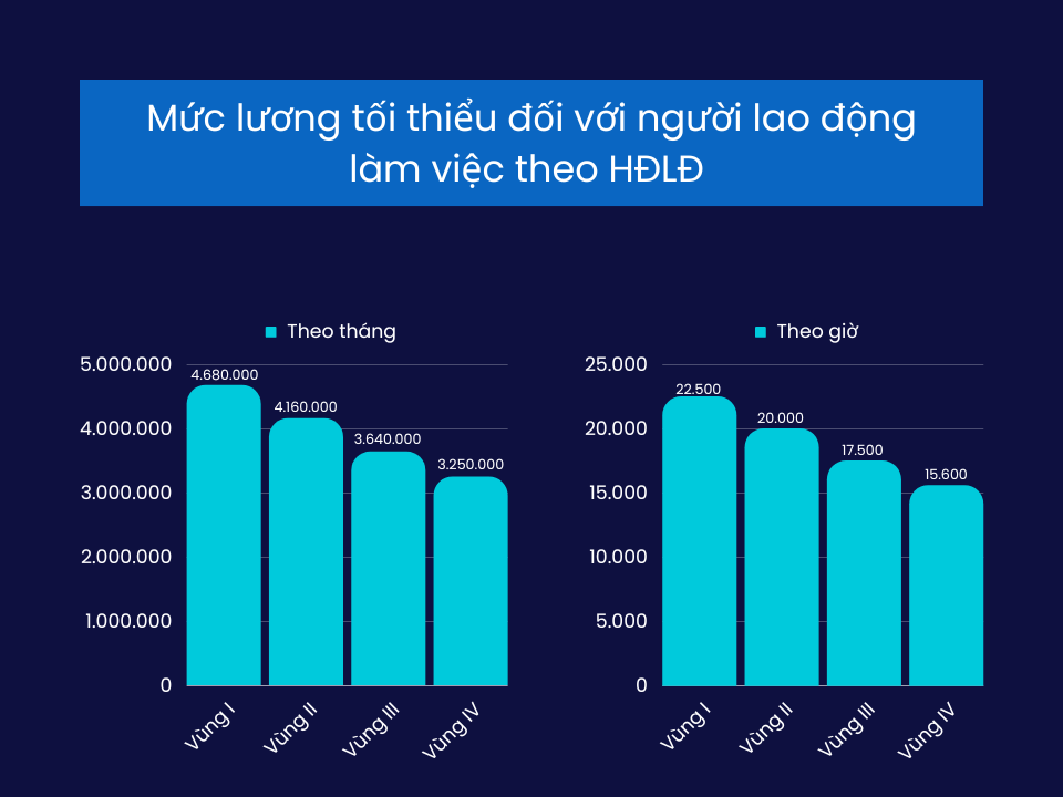 Mức lương tối thiểu đối với người lao động làm việc cho người sử dụng lao động theo vùng như sau: