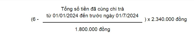 Đối với các trường hợp có số tiền cùng chi trả từ 01/01/2024 đến trước ngày 01/7/2024 đã đủ hoặc vượt quá 6 tháng lương cơ sở thì được hưởng quyền lợi theo quy định tại Điểm đ Khoản 1 Điều 14 Nghị định 146/2018/NĐ-CP và không áp dụng công thức này.