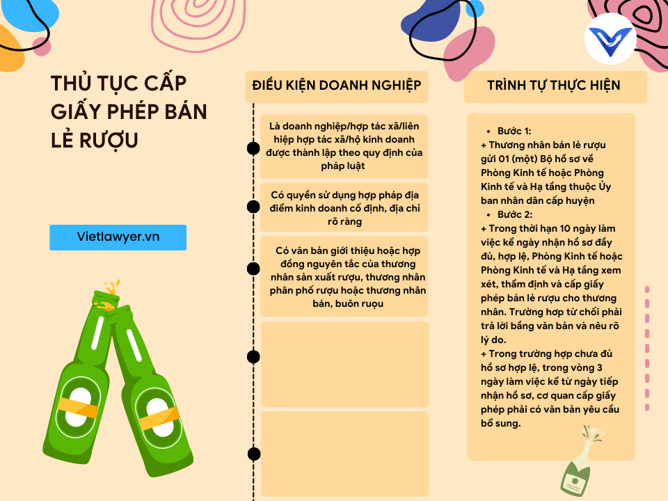 0927625666Thủ tục cấp giấy phép bán lẻ rượu | Giấy phép con - Bán lẻ rượu là ngành, nghề đầu tư kinh doanh có điều kiện. Các doanh nghiệp mới thành lập hoặc chuyển sang bán lẻ rượu cần đề nghị Cấp giấy phép kinh doanh tại cơ quan có thẩm quyền. Công ty luật VietLawyer sẽ cung cấp cho khách hàng về thủ tục Cấp giấy phép bán lẻ rượu dưới đây.