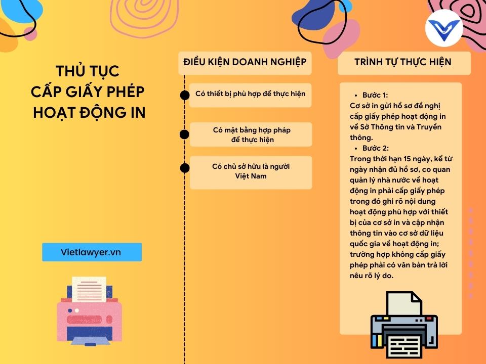 0927625666Thủ tục cấp Giấy phép hoạt động in | Giấy phép con - Kinh doanh in ấn là ngành, nghề phổ biến do nhu cầu về in ấn tài liệu, sách trong nước vô cùng cao nhưng là ngành, nghề đầu tư kinh doanh có điều kiện. Các cơ sở kinh doanh hoạt động in cần đề nghị Cấp Giấy phép hoạt động tại cơ quan có thẩm quyền. Công ty Luật VietLawyer sẽ cung cấp cho khách hàng về thủ tục cấp Giấy phép hoạt động in.